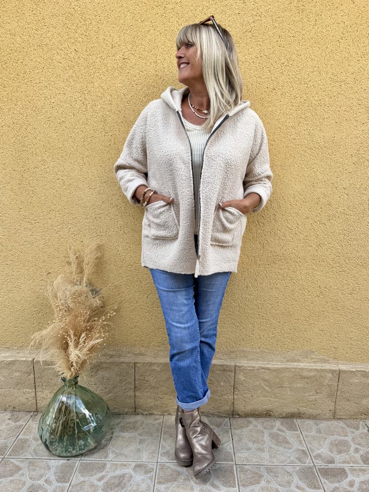 (A titre d’indication, le mannequin mesure 1,71m et porte habituellement du XL (42) en carrure d’épaule, et du M/L (38-40) en bas)