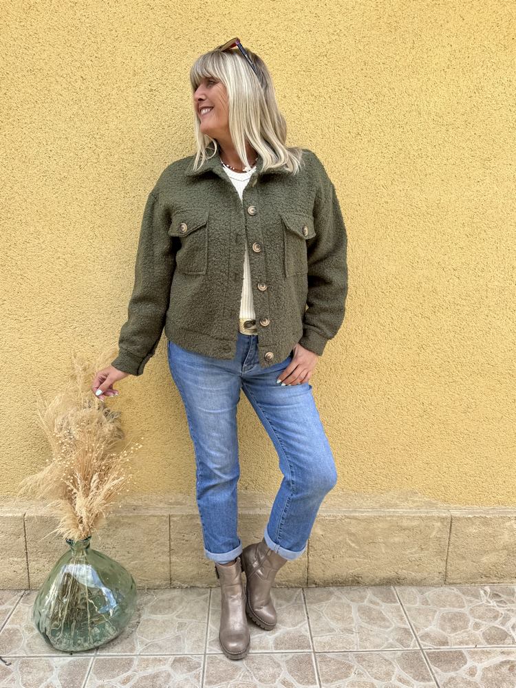 - 1 poche à rabat de chaque côté au niveau de la poitrine