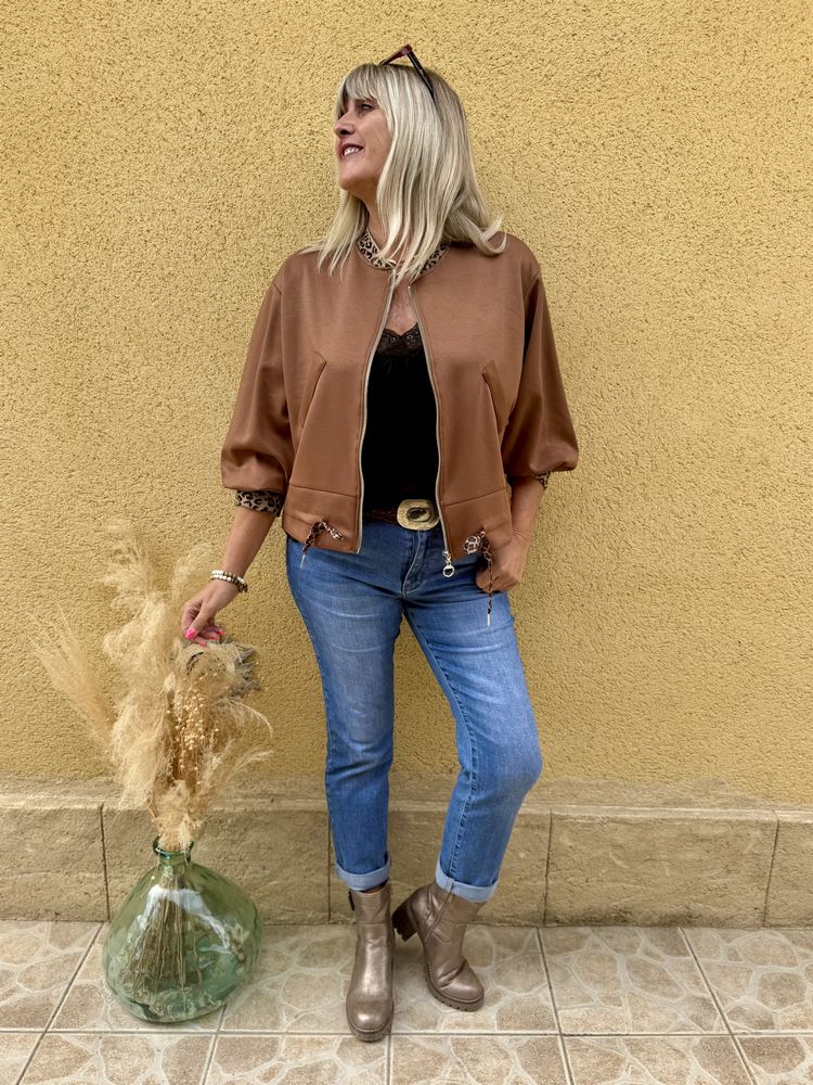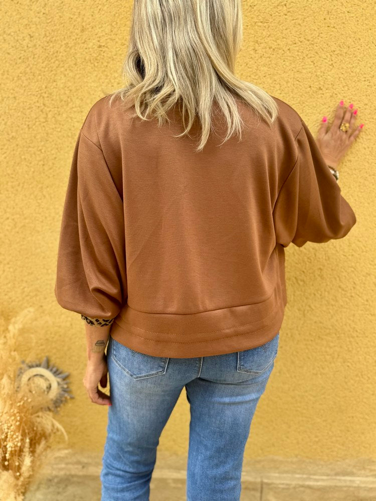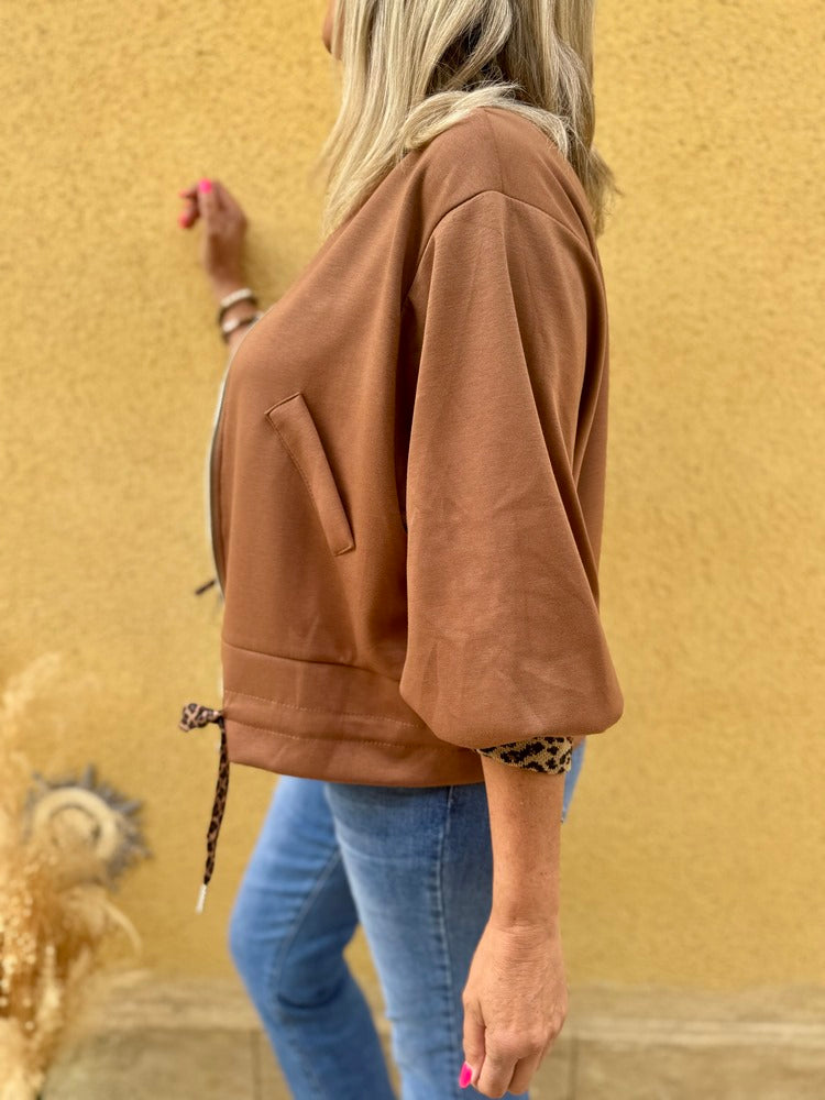 - Peut se resserrer sur le bas par un cordon imprimé léopard
