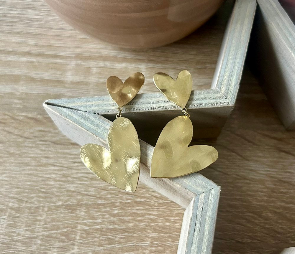 - 2 cœurs dorés martelés