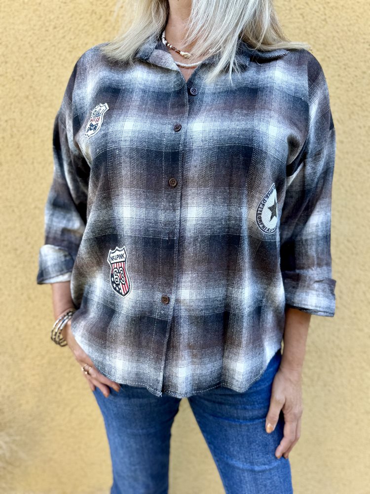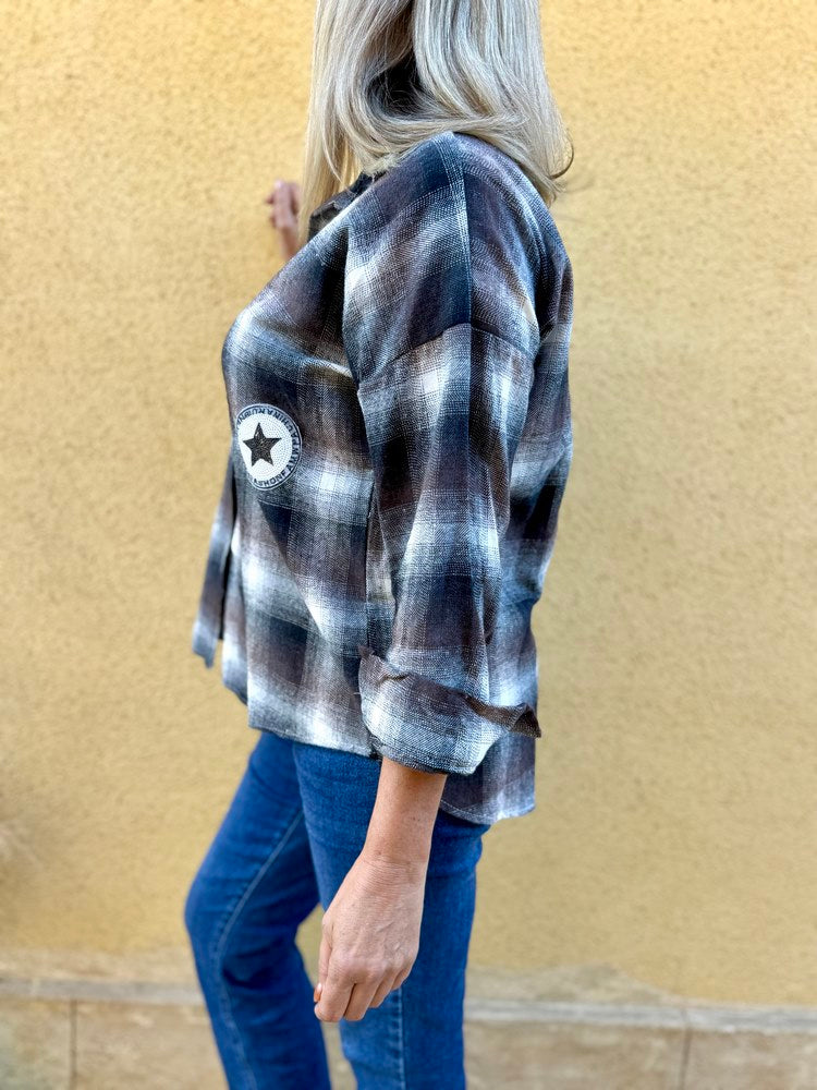- Ecussons différents sur le devant (celui de gauche avec motif étoile travaillé de sequins noir et blanc)