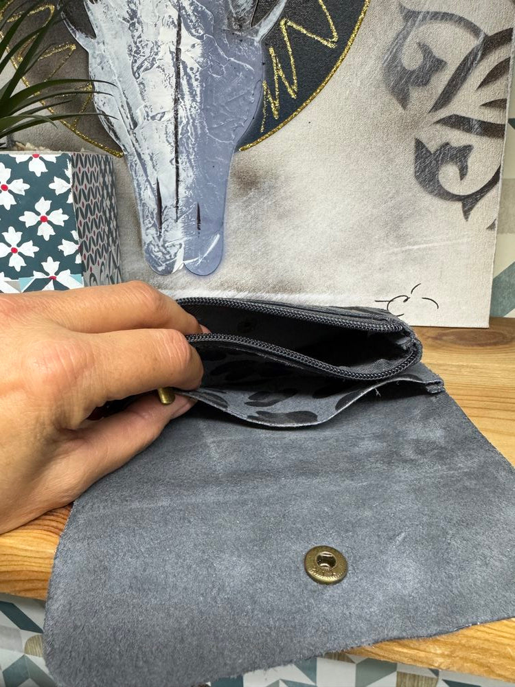 Grand porte monnaie en cuir Lorenzo gris