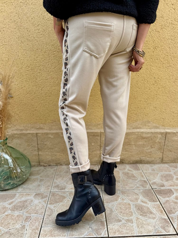 - Bande imprimée léopard travaillée de strass de chaque côté