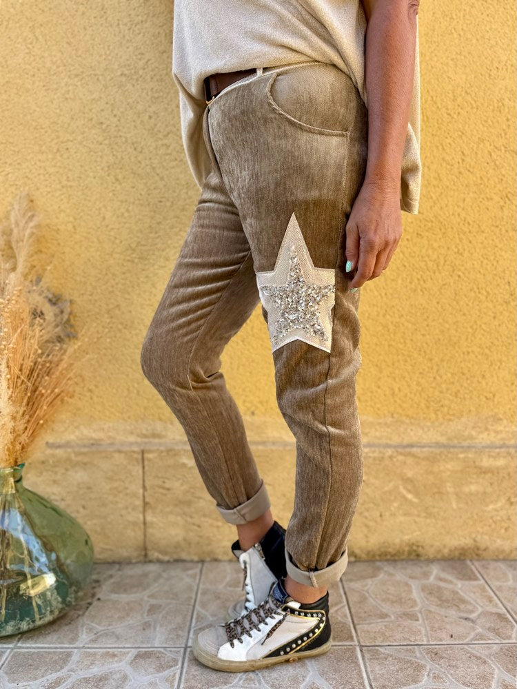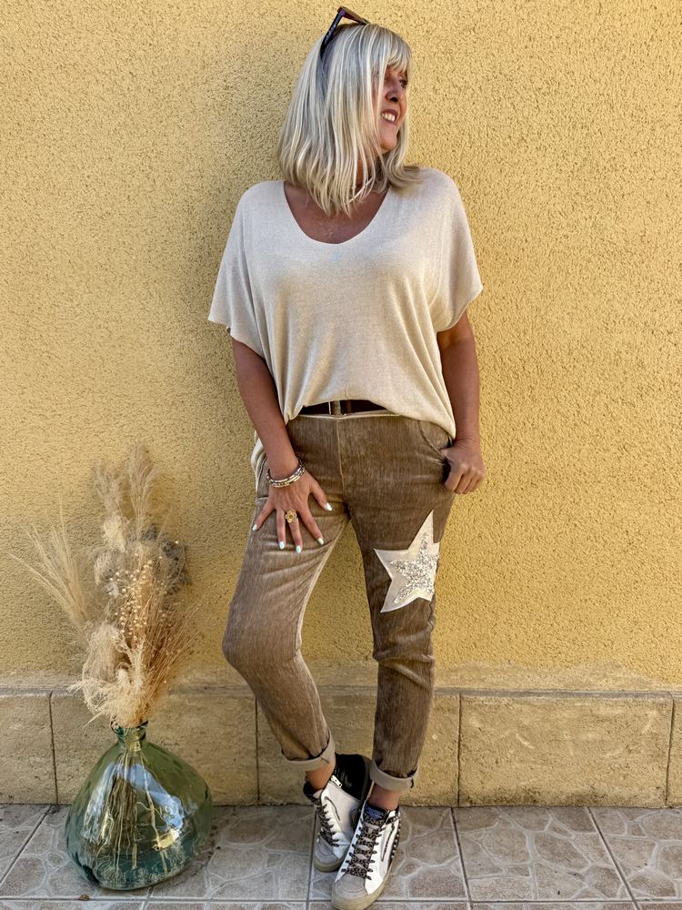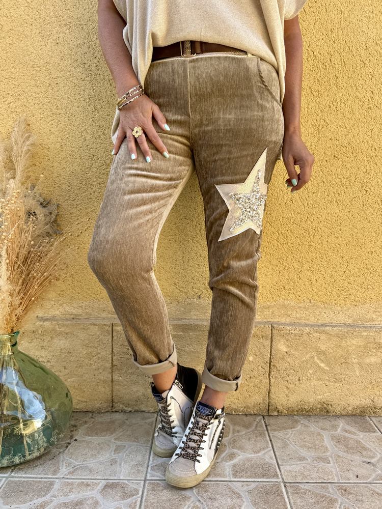 Jogg velours Etoile taupe