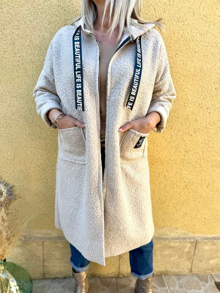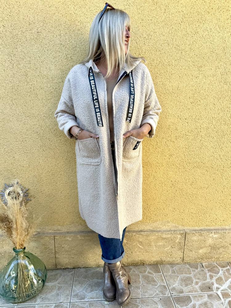 - Grande fermeture éclair avec anneau métallique sur le devant
