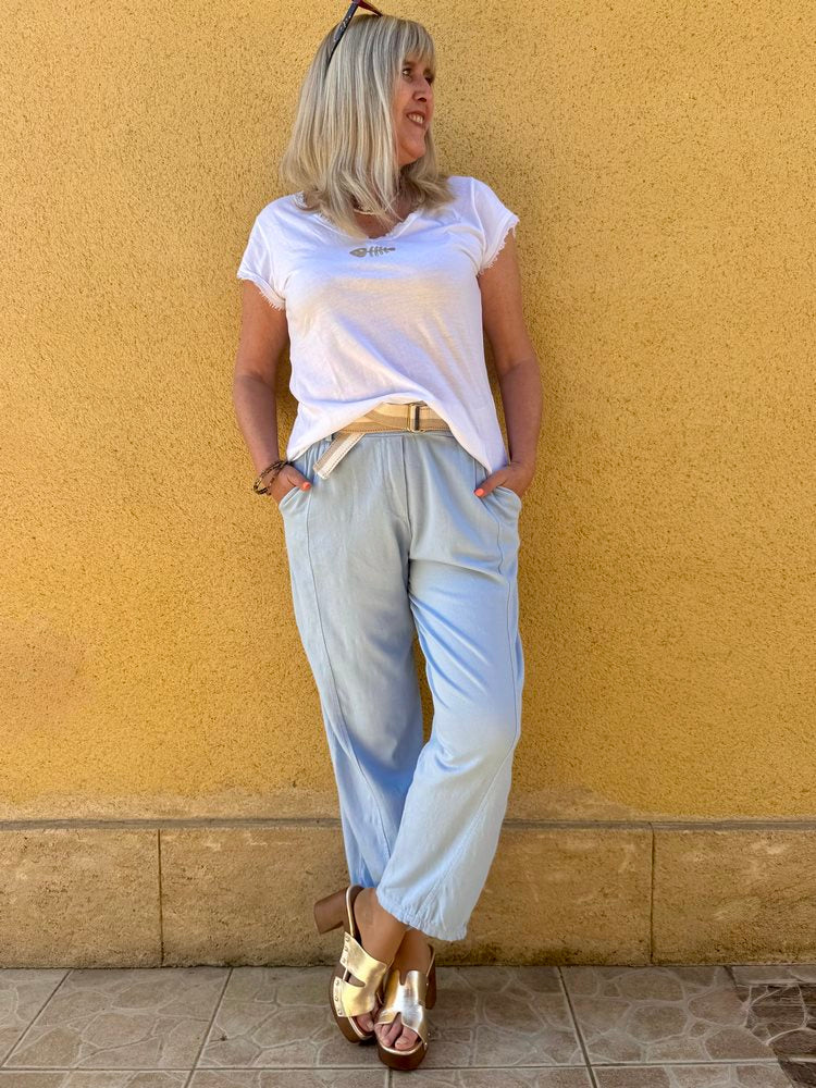 Pantalon en coton Emilio bleu ciel