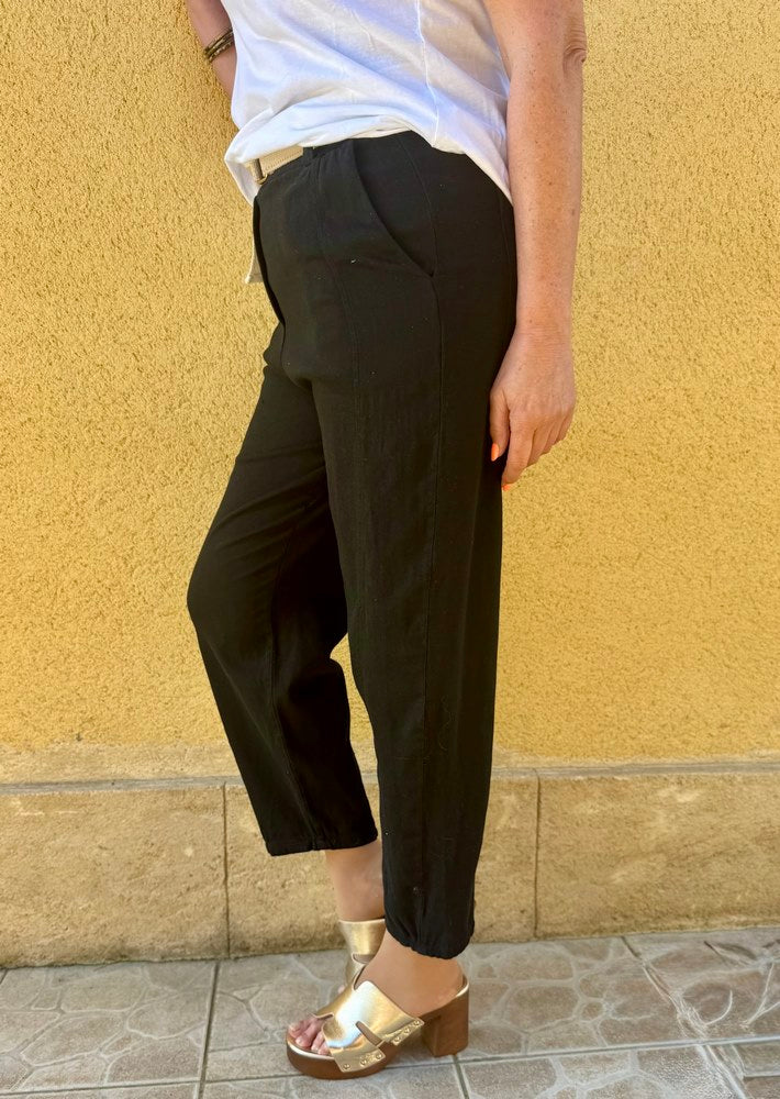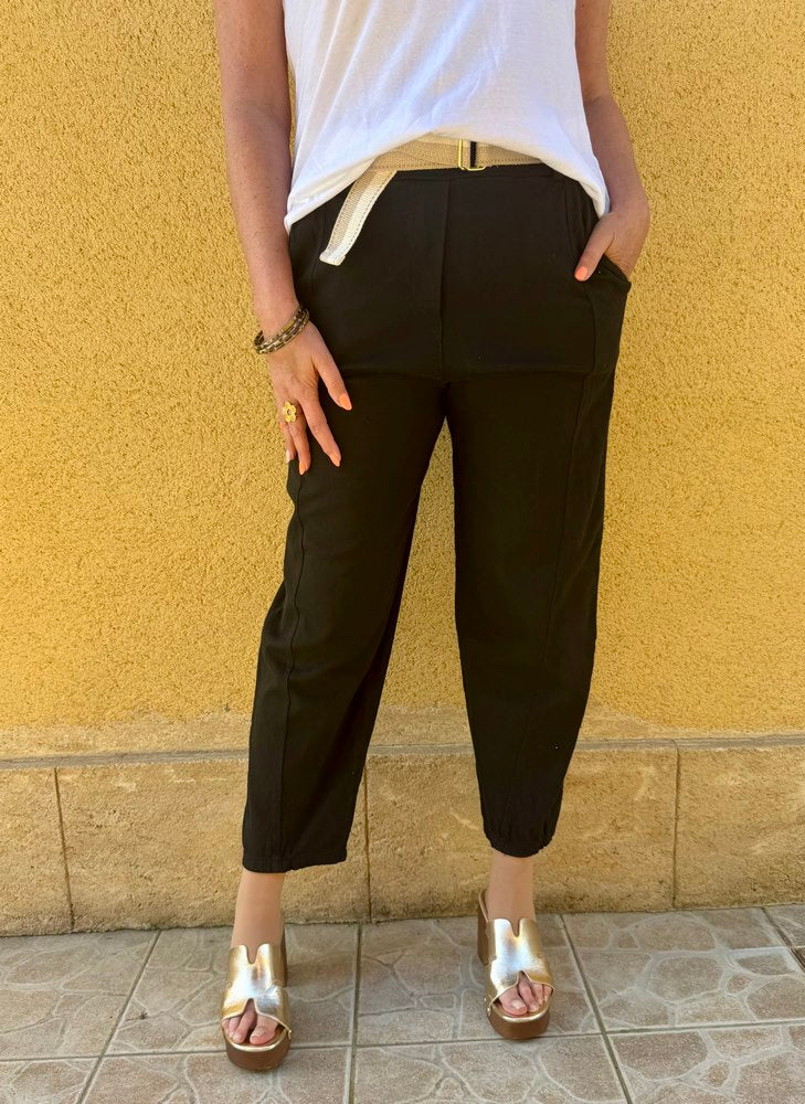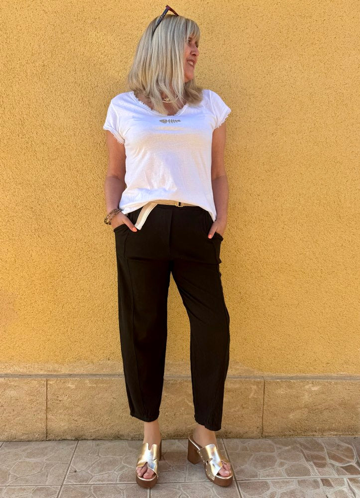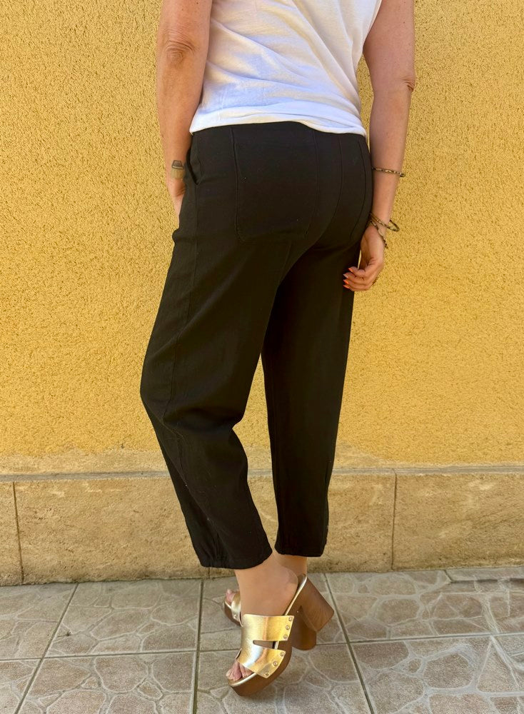 - Légèrement resserré sur le bas par une petite surpiqure au niveau de la cheville sur l’arrière