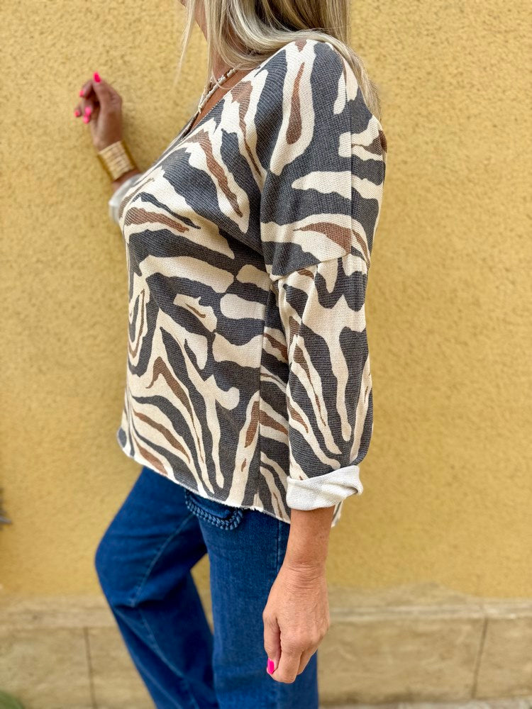 Pull fin Enzo zèbre