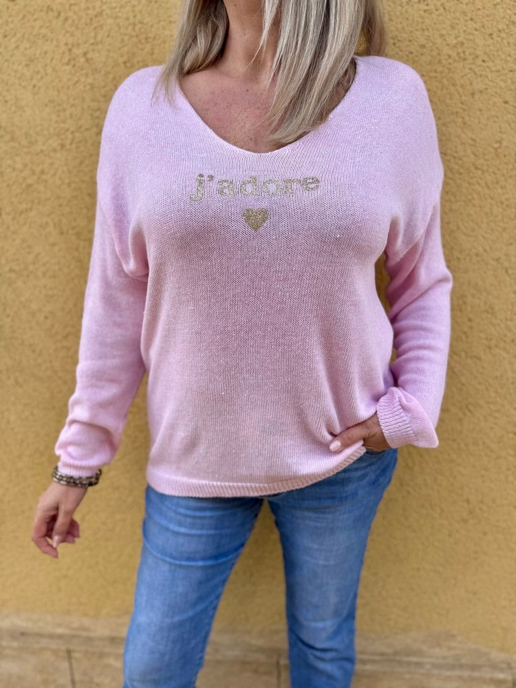 - Inscription "j'adore" et motif cœur doré sous l'encolure