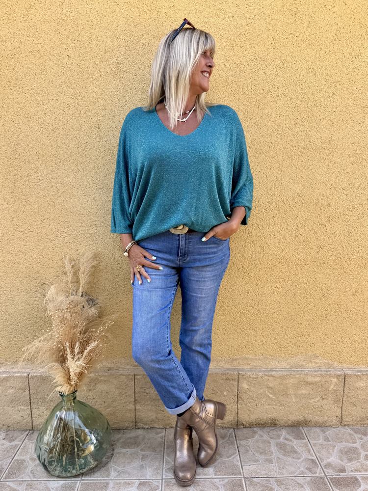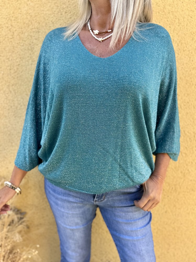 Pull loose brillant Eduardo bleu canard