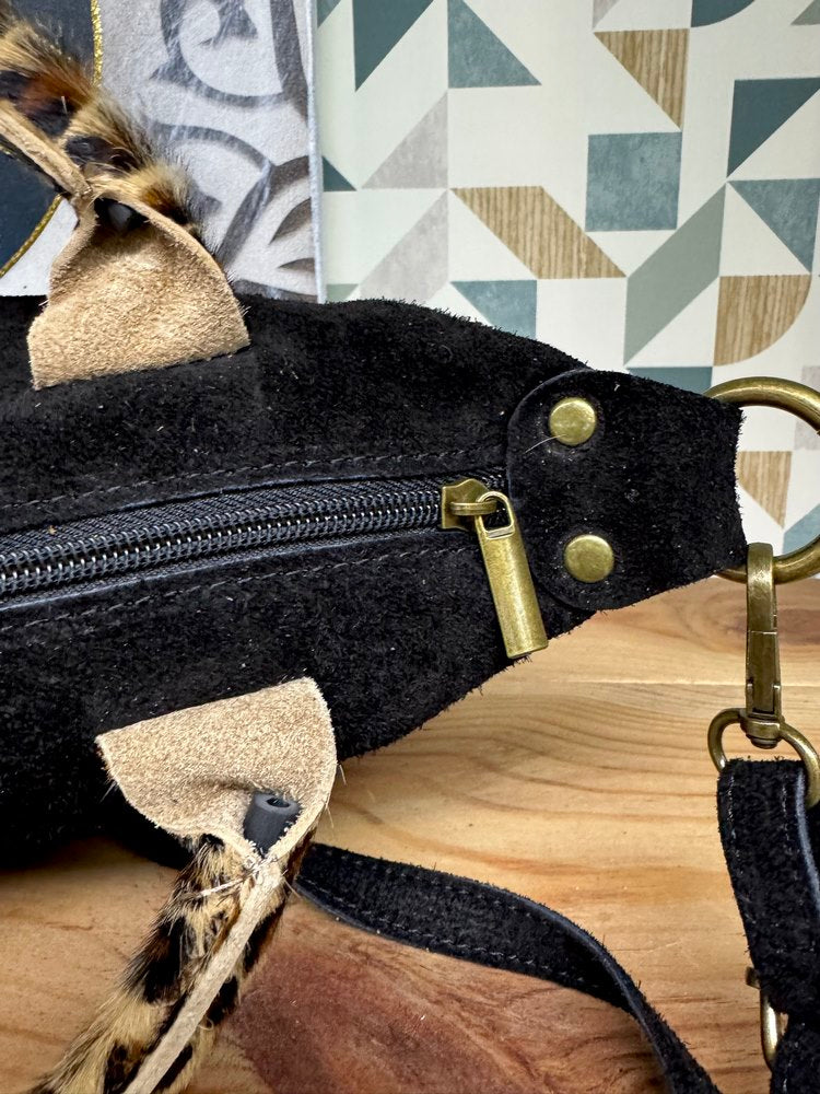 - Anses en fausse fourrure léopard