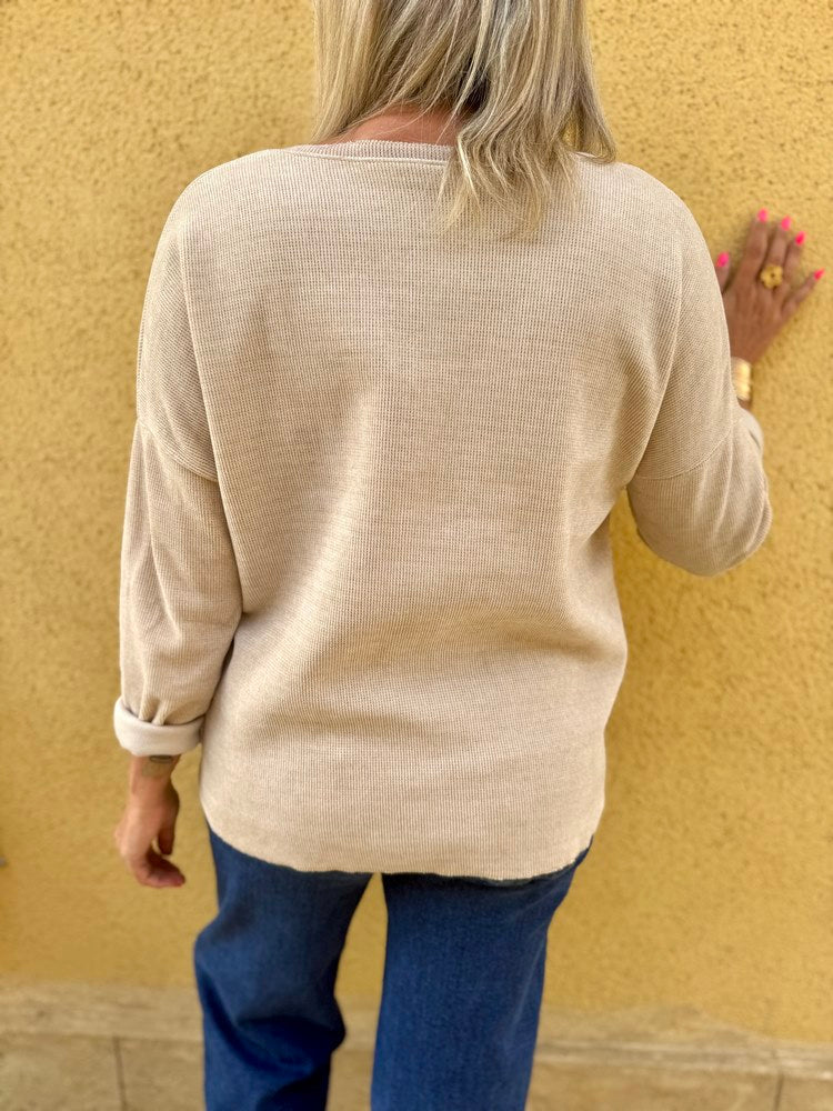 - Motif Poisson en relief travaillé de sequins dorés sur le devant