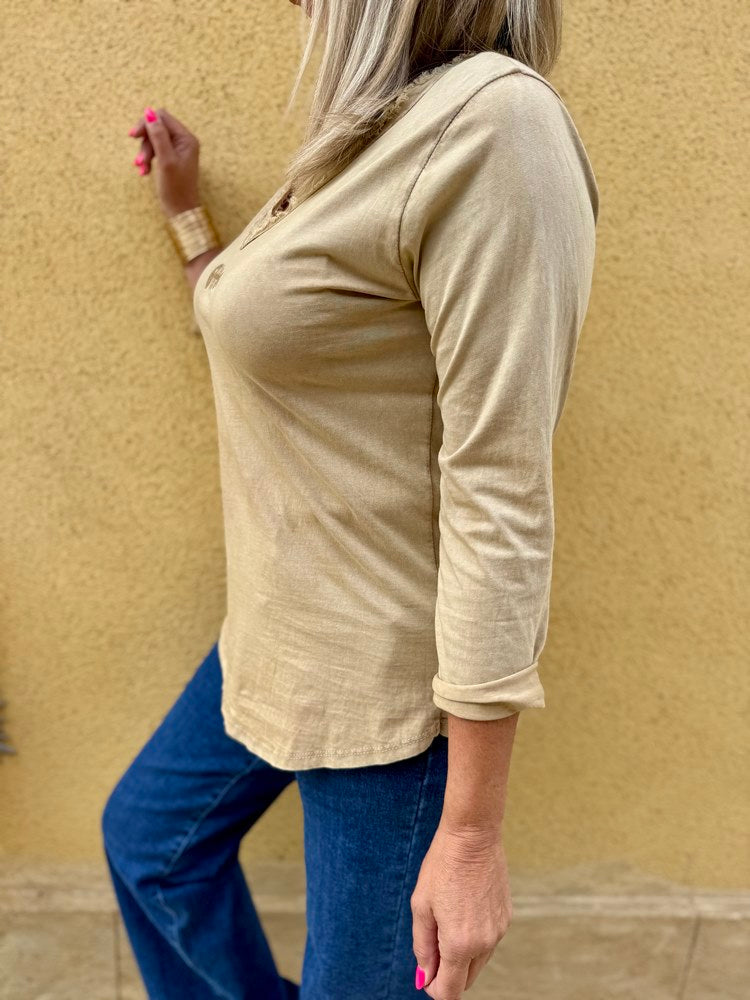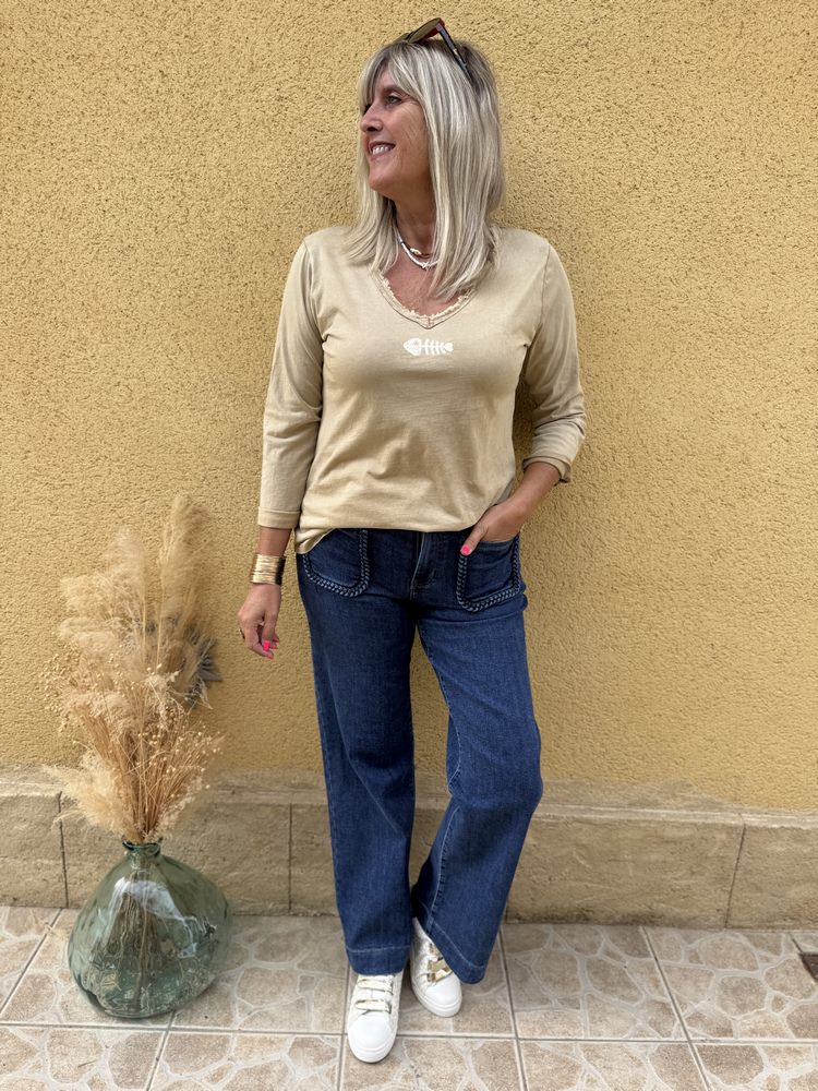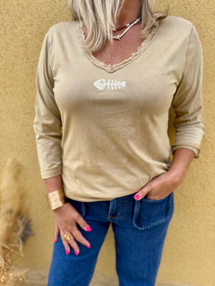 Teeshirt manches longues Poisson camel