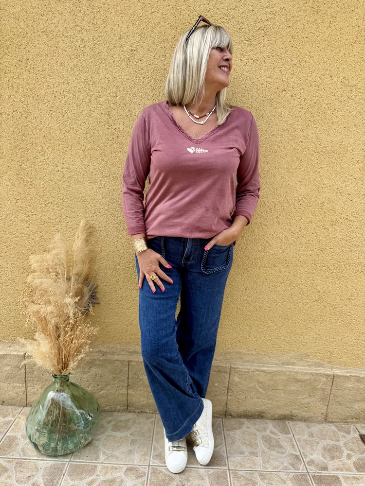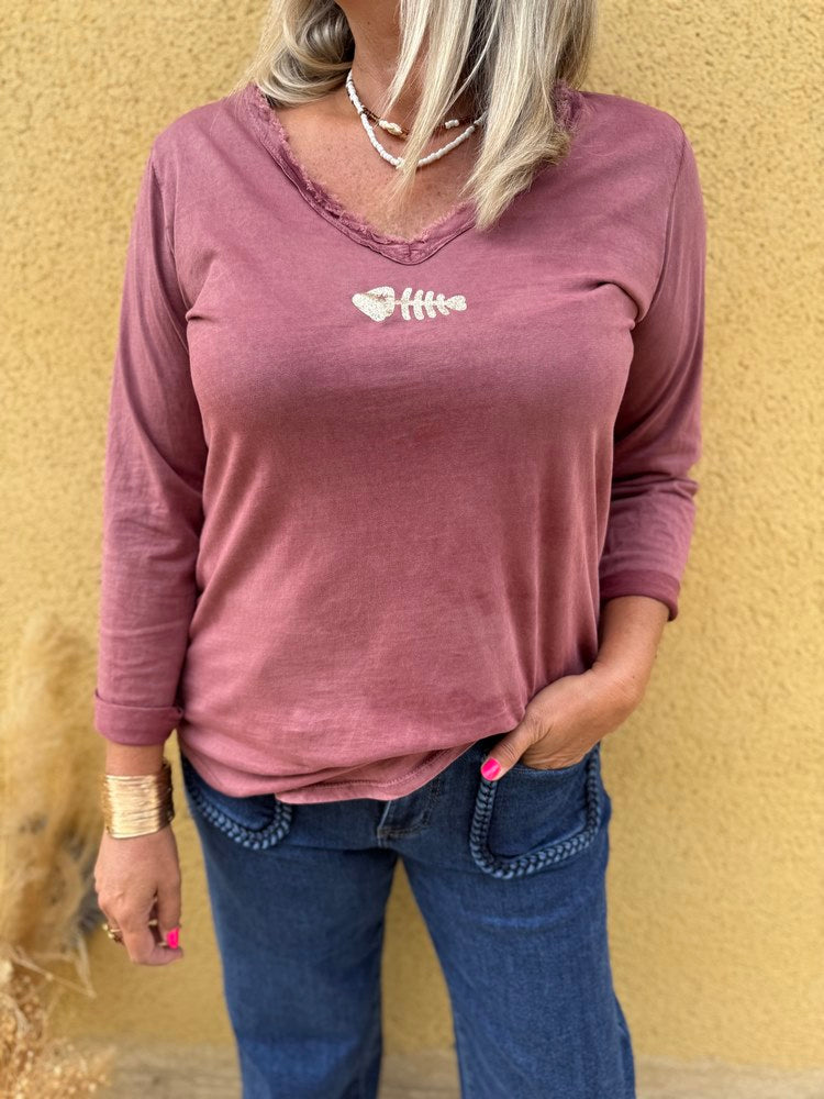 Teeshirt manches longues Poisson lie de vin
