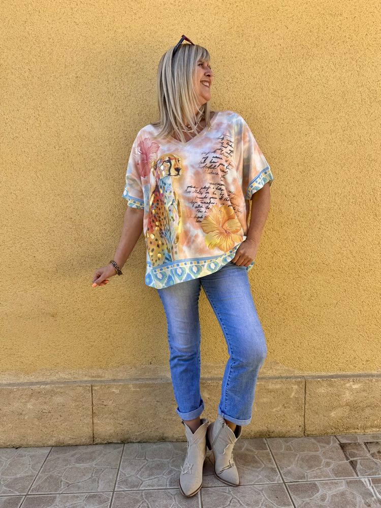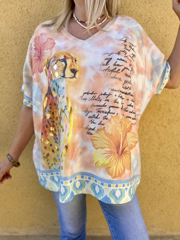 - Motif panthère ou flamant rose rehaussé de touches dorées sur le devant