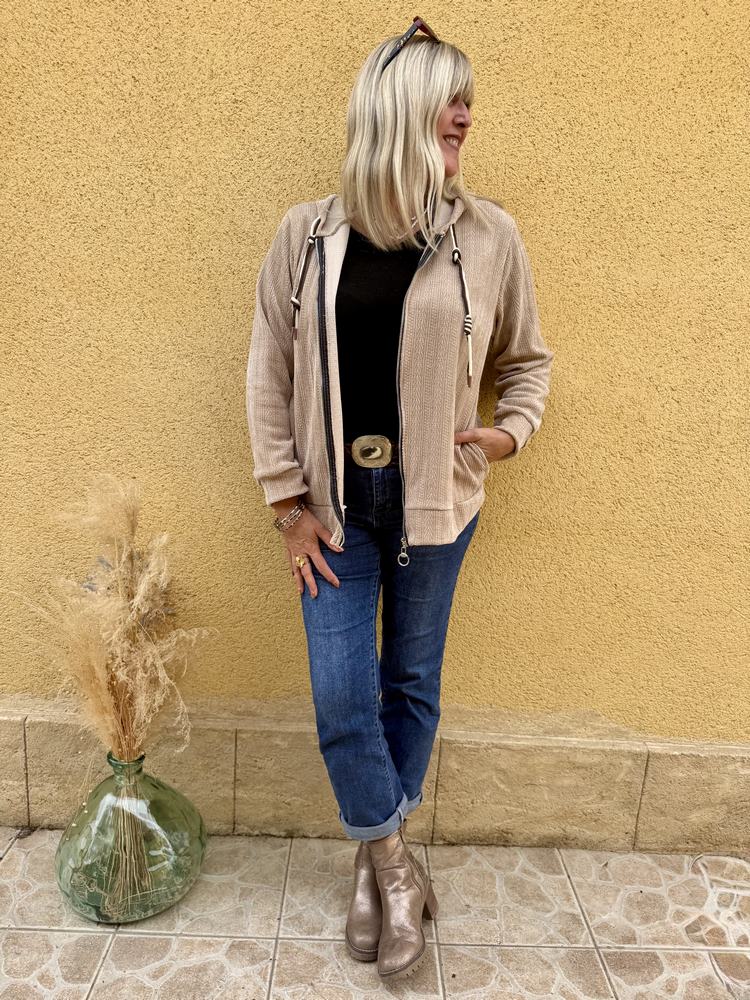 (A titre d’indication, le mannequin mesure 1,71m et porte habituellement du XL (42) en carrure d’épaule, et du M/L (38-40) en bas)