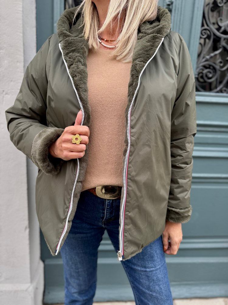 - Réversible : un côté polaire tout doux, l'autre côté imperméable