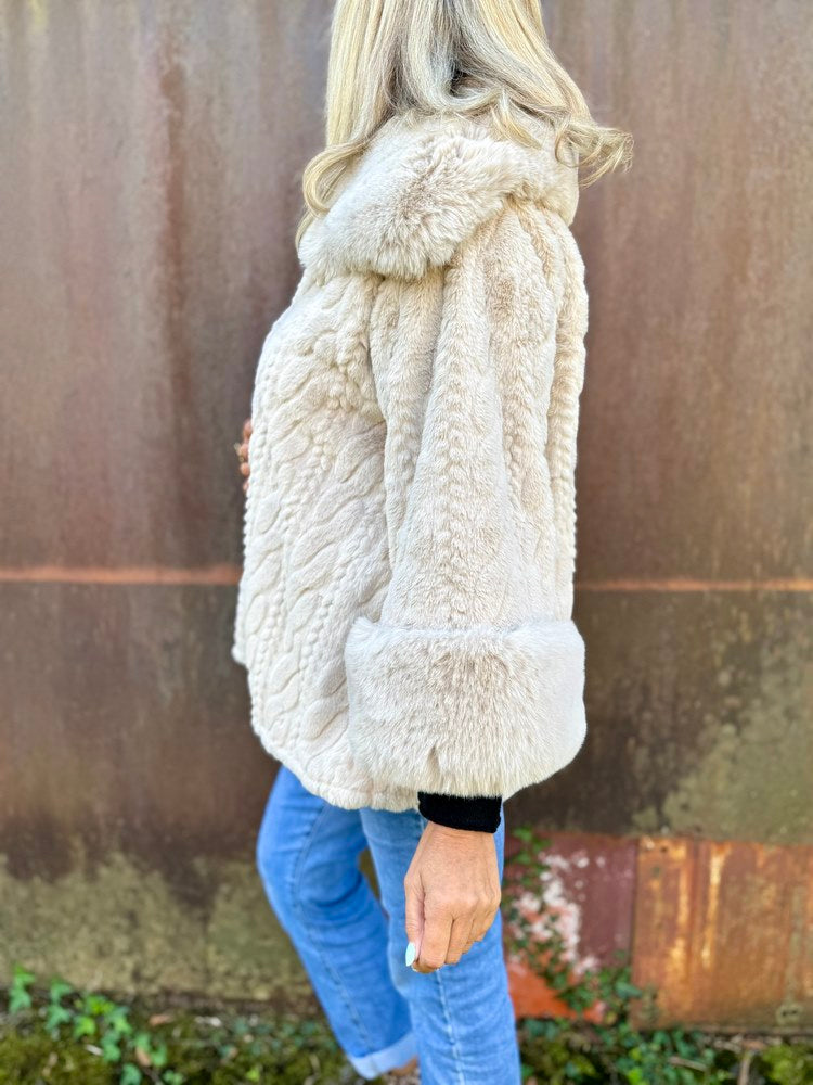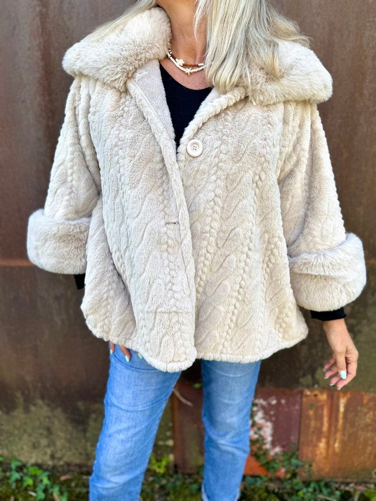 - Col et poignets travaillés en fausse fourrure plus épaisse