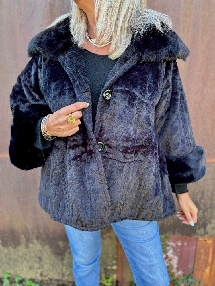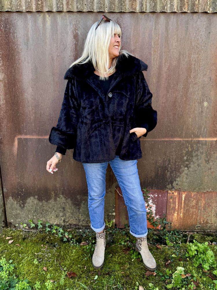 - Col et poignets travaillés en fausse fourrure plus épaisse