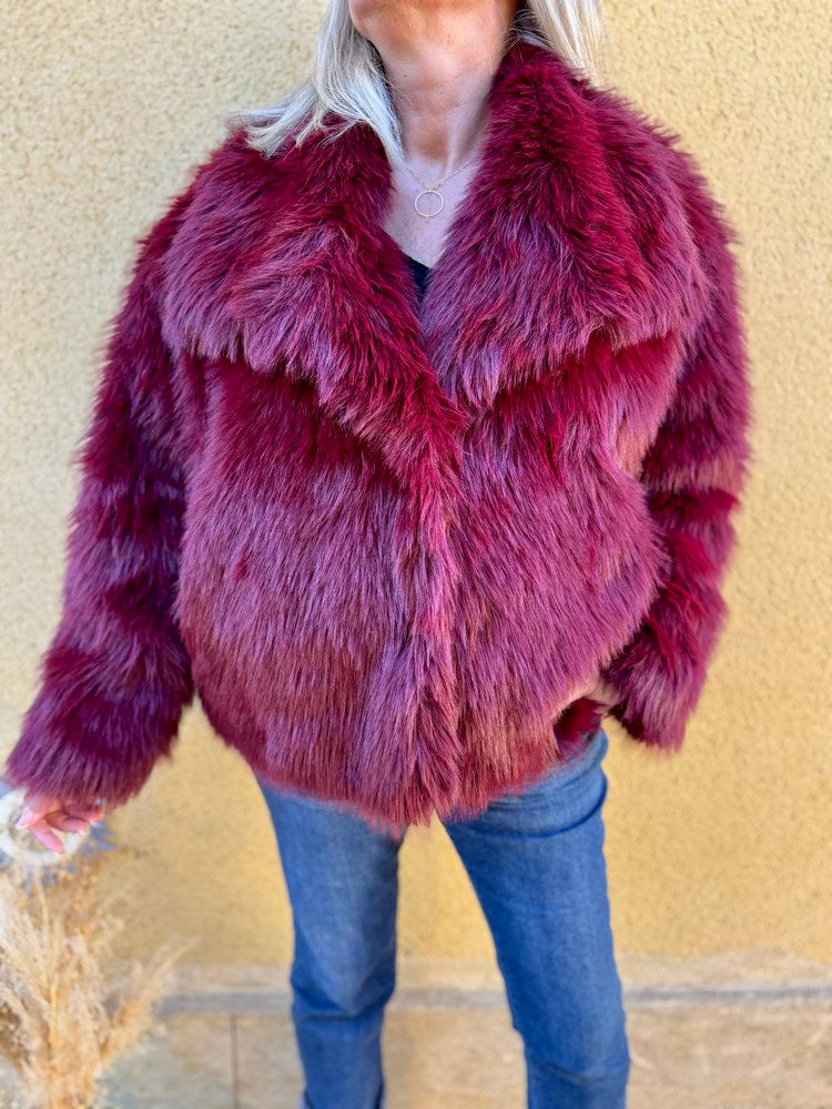 Veste en fausse fourrure Amanda bordeaux