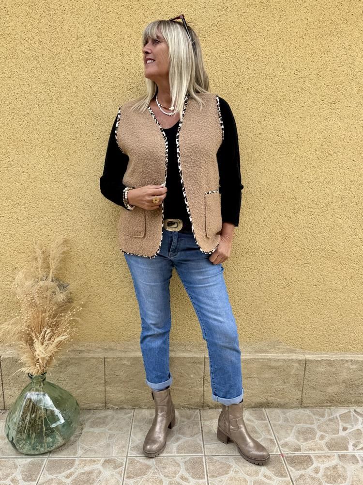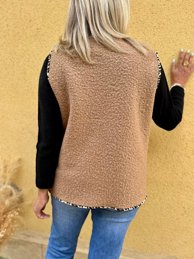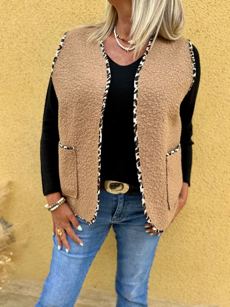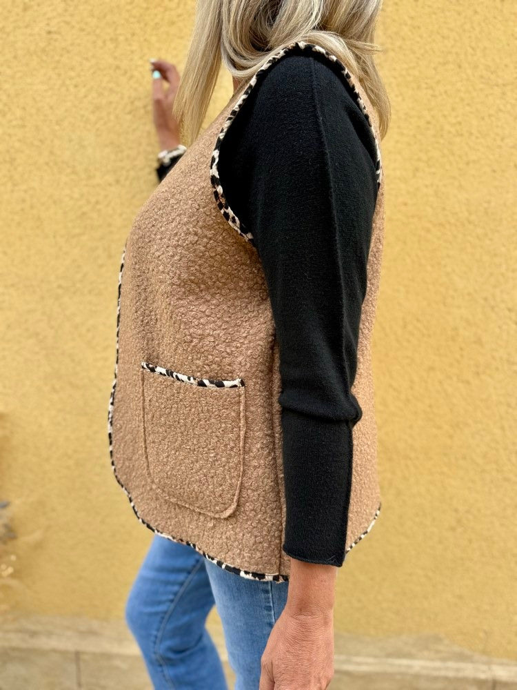 - Petit biais léopard au niveau des emmanchures des poches, encolure et bas