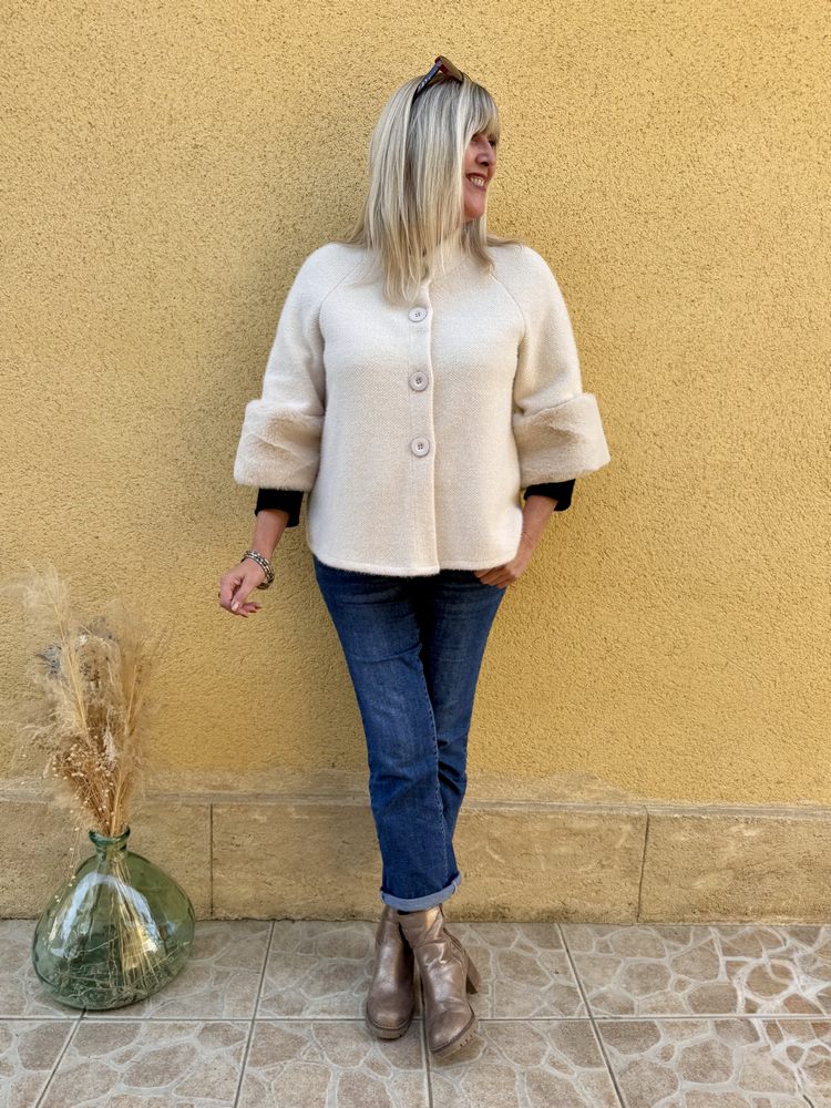 (A titre d’indication, le mannequin mesure 1,71m et porte habituellement du XL (42) en carrure d’épaule, et du M/L (38-40) en bas)