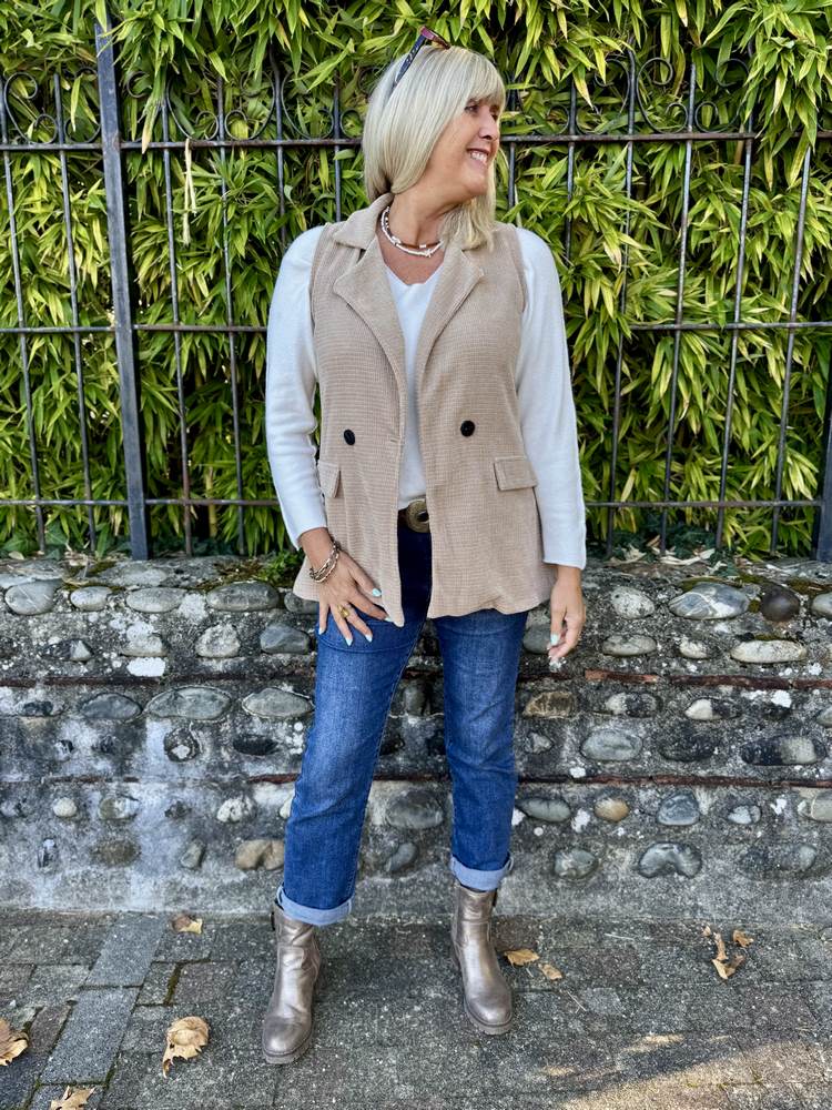 (A titre d’indication, le mannequin mesure 1,71m et porte habituellement du XL (42) en carrure d’épaule, et du M/L (38-40) en bas)