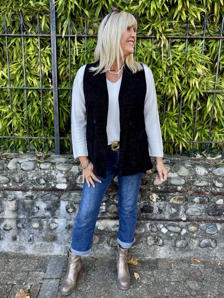 (A titre d’indication, le mannequin mesure 1,71m et porte habituellement du XL (42) en carrure d’épaule, et du M/L (38-40) en bas)