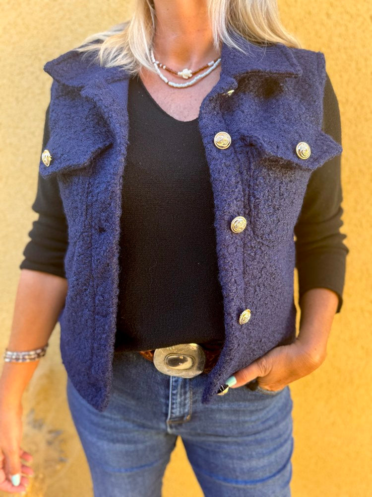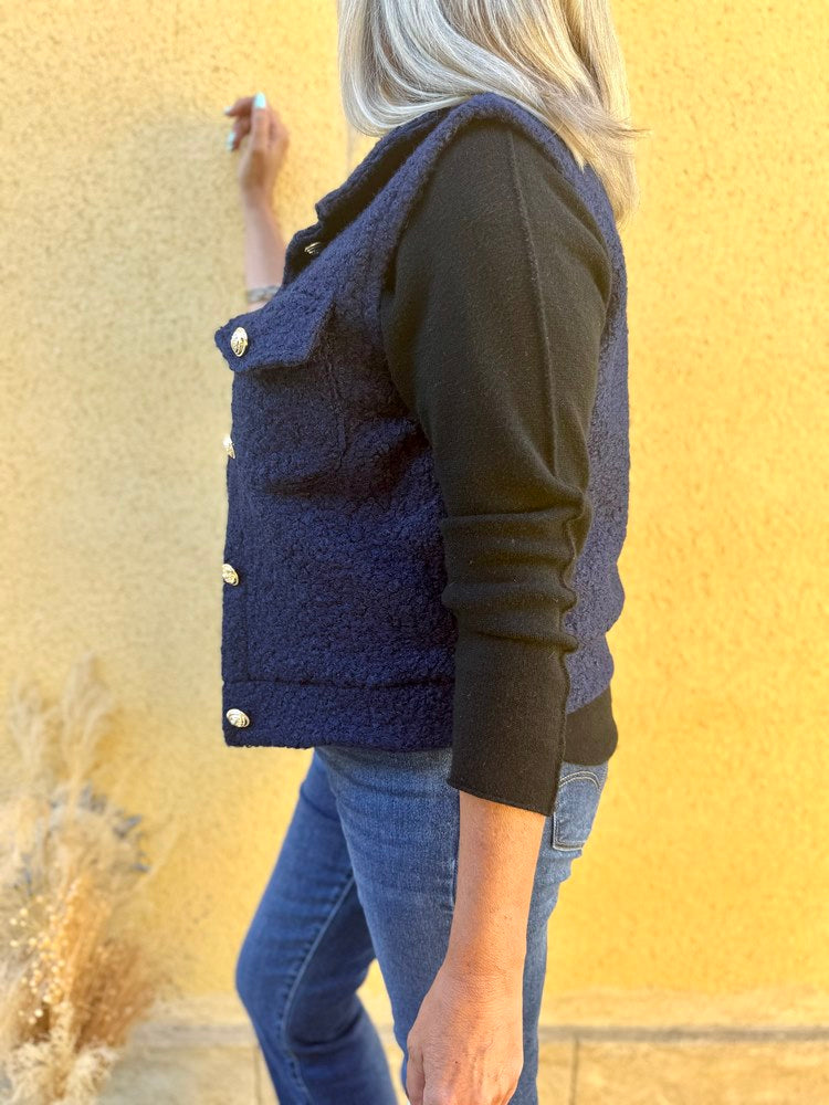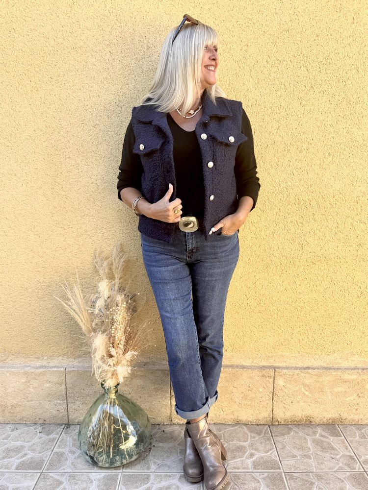 - Dimensions: épaules 43cm, poitrine 53cm, hanches 51cm, longueur 55cm