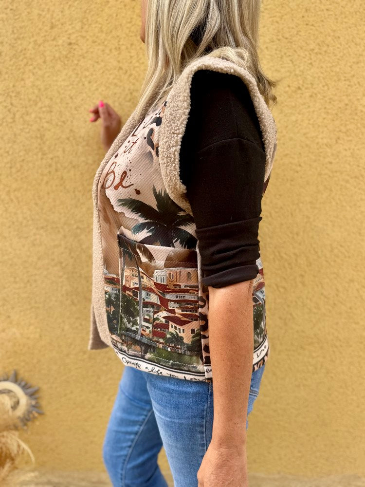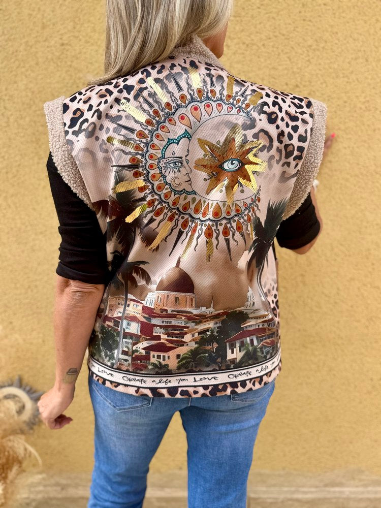 - Dimensions : poitrine 55cm, longueur 65cm dans le dos sans pompons et 87cm devant aux pointes
