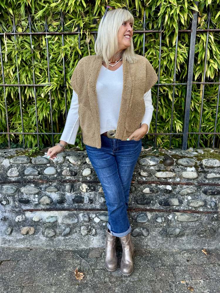 (A titre d’indication, le mannequin mesure 1,71m et porte habituellement du XL (42) en carrure d’épaule, et du M/L (38-40) en bas)